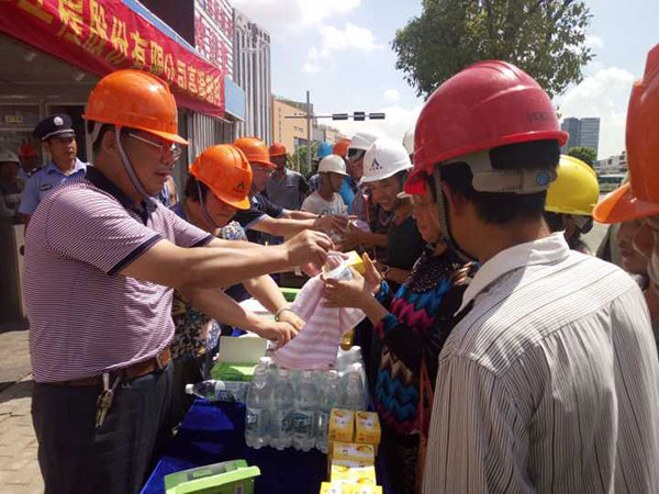 在慰問活動(dòng)中,劉厚純書記每到一處都向堅(jiān)守崗位的一線員工表示親切慰問,與項(xiàng)目經(jīng)理進(jìn)行交談,詳細(xì)了解項(xiàng)目施工情況和工人的生活情況。他要求各項(xiàng)目部要切實(shí)關(guān)心一線作業(yè)人員的安全和健康,采取有效措施,合理調(diào)整工作時(shí)間,確保將防暑降溫工作落到實(shí)處,確保員工身體健康,確保生產(chǎn)安全。