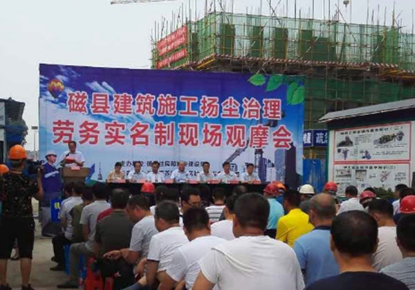 縣住建局負(fù)責(zé)同志宣讀了《建筑施工揚(yáng)塵防治標(biāo)準(zhǔn)》和《勞務(wù)實(shí)名制實(shí)施方案》,會(huì)議要求各單位、各項(xiàng)目要“零容忍”,堅(jiān)決打好施工揚(yáng)塵治理攻堅(jiān)戰(zhàn)、強(qiáng)化推進(jìn),堅(jiān)決打好安全生產(chǎn)持久戰(zhàn)、狠抓落實(shí),堅(jiān)決打好文明工地創(chuàng)建戰(zhàn)。第十工程公司在會(huì)上作經(jīng)驗(yàn)交流及表態(tài)性發(fā)言,與會(huì)代表還實(shí)地觀摩了施工現(xiàn)場(chǎng)。