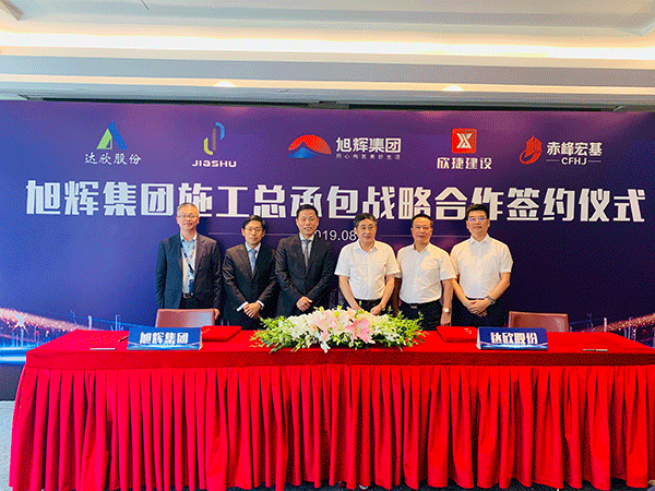 在旭輝集團(tuán)執(zhí)行總裁陳東彪先生與達(dá)欣集團(tuán)董事長馬和軍先生的共同見證下,旭輝集團(tuán)運(yùn)營中心總經(jīng)理劉峰與達(dá)欣集團(tuán)黨委書記劉厚純代表雙方簽約施工總承包戰(zhàn)略合作協(xié)議。