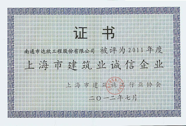 根據(jù)《上海市建筑施工企業(yè)誠信建設(shè)行業(yè)評(píng)價(jià)試行辦法》和《上海市建筑施工企業(yè)綜合實(shí)力排名辦法》、2011年度企業(yè)誠信建設(shè)相關(guān)考核、《指標(biāo)體系及評(píng)分標(biāo)準(zhǔn)》等內(nèi)容,第一工程公司在經(jīng)過申報(bào)、初審、征詢主管部門意見、上網(wǎng)公示四個(gè)環(huán)節(jié)后,最終由上海市建筑施工企業(yè)誠信建設(shè)行業(yè)評(píng)價(jià)委員會(huì)審定通過,榮獲2011年度“上海市建筑業(yè)誠信企業(yè)”稱號(hào)。這是達(dá)欣股份自易名以來連續(xù)五年獲此殊榮。此外公司還被評(píng)為2011年度“上海市建筑施工企業(yè)綜合實(shí)力進(jìn)步獎(jiǎng)”稱號(hào),承建的萬寶國際廣場(chǎng)項(xiàng)目榮獲2011年度上海市“白玉蘭”優(yōu)質(zhì)工程。