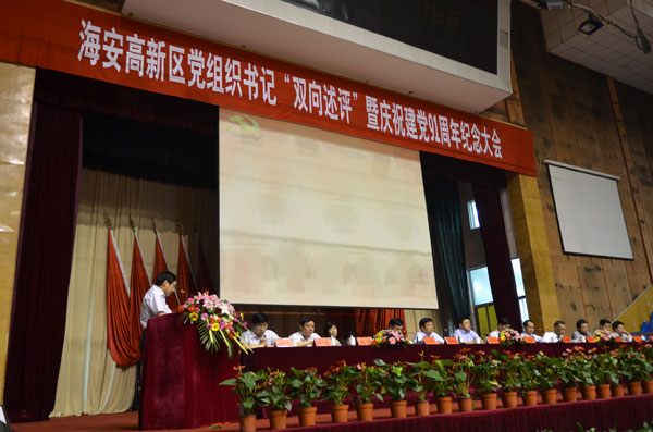 6月27日,海安高新區(qū)黨組織書記“雙向述評(píng)”暨慶祝建黨91周年大會(huì)在我縣海中體藝館舉行。縣委常委、海安高新區(qū)黨工委書記張亞曦及全體黨政負(fù)責(zé)人、各局(辦)、各街、村(居)全體人員、各黨(總)支部書記、全體縣、鎮(zhèn)黨代表參加了會(huì)議。