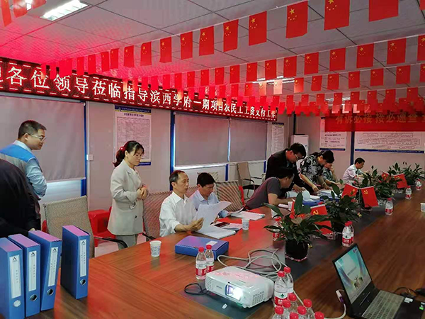 安全員毛張旭就項目在農(nóng)民工工資支付工作的開展情況,從現(xiàn)場管理到資料留存進(jìn)行了全面的介紹。隨后,調(diào)研組分別對民工的工資支付情況、人數(shù)、整體工作年齡、職工待遇、整體文化程度等方面進(jìn)行了詳細(xì)的了解。最后,由項目經(jīng)理吳慧強(qiáng)和勞資員梁有為陪同檢查組查閱了文件資料。