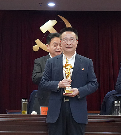 會(huì)上,集團(tuán)黨委書(shū)記劉厚純上臺(tái)接受表彰,領(lǐng)取了黨建“魯班獎(jiǎng)”小金人獎(jiǎng)杯。