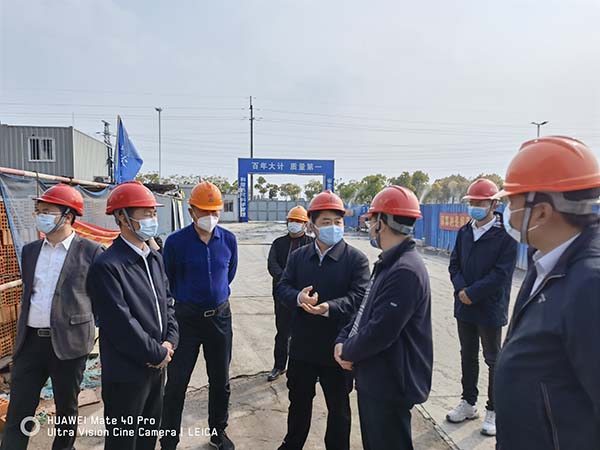 4月18日下午,海安市副市長曹鋮等市領(lǐng)導(dǎo)一行來到海安市應(yīng)急醫(yī)院新建工程項目,實地考察項目推進(jìn)情況,并就當(dāng)前疫情防控工作做重要指示,集團(tuán)董事、常務(wù)副總經(jīng)理王邦國等陪同。