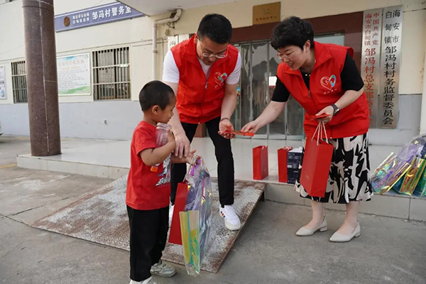 5月31日,在“六·一”國際兒童節(jié)到來之際,達(dá)欣集團(tuán)·魯班傳人志愿服務(wù)總隊(duì)來到白甸鎮(zhèn)鄒馮村開展“欣愛童”關(guān)愛行動(dòng),集團(tuán)總經(jīng)理王邦國,黨委副書記陳春紅,團(tuán)委書記錢美澄參加。