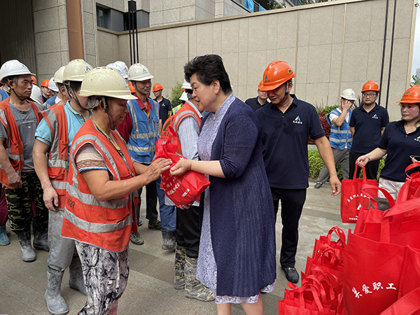 葛玉琴深入施工現(xiàn)場,看望慰問了高溫下堅守崗位的一線職工,為他們送上慰問用品,并叮囑大家注意安全,做好防暑降溫工作。她說,防暑降溫是夏季重要勞動保護工作,直接關(guān)系廣大勞動者的身體健康和企業(yè)的安全生產(chǎn)。她希望,大家共同努力,讓安全意識更加深入人心,切實筑牢安全屏障,項目部要合理安排作業(yè)時間,做好防暑應(yīng)急措施,切實維護建設(shè)者勞動安全健康權(quán)益。