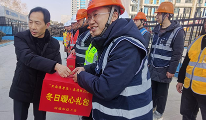 1月13日,南通市總工會黨組成員、經審會主任周正秋,南通市總工會權益保障部部長趙周恒一行,來到達欣集團南通R23005地塊項目建設現(xiàn)場,開展“工會在身邊 真情暖江海”2025年春節(jié)送溫暖活動,為奮戰(zhàn)在一線的工作人員送上冬日暖心禮包和新春的祝福與慰問。
