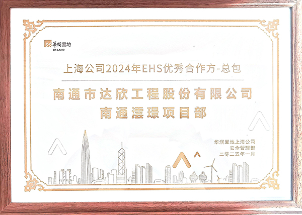 公司自與華潤(rùn)置地合作以來,憑借專業(yè)的能力、優(yōu)質(zhì)的服務(wù)和高效的協(xié)作,在眾多合作方中脫穎而出,榮獲華潤(rùn)置地上海公司“2024年EHS優(yōu)秀合作方-總包”稱號(hào)。
