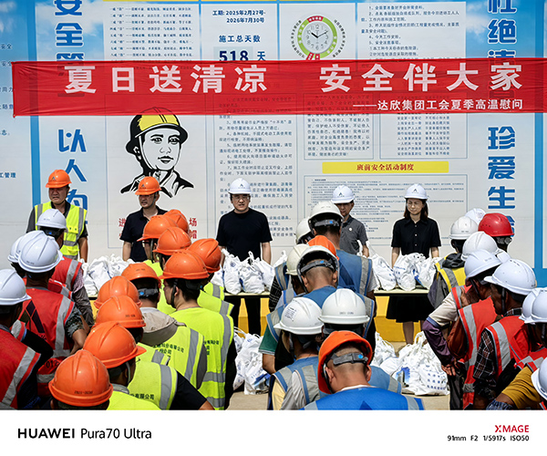 在華潤上海寶山、華潤上海桃浦項目施工現(xiàn)場,集團總經理王邦國向堅守在一線的職工表達了誠摯的敬意和感謝,為大家送上精心準備的“清涼”慰問品。他詢問了項目高溫作業(yè)時段安排及防暑降溫措施的落實情況,要求合理安排生產作息時間,科學安排工序,將夏季安全生產的要求落到實處,保障每一位職工的健康與安全。