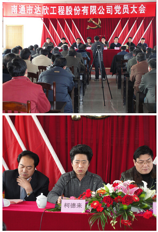2月20日下午,公司全體黨員聚集在黨員活動室召開南通市達(dá)欣工程股份有限公司黨員大會??h委常委、常務(wù)副縣長柯德來、縣人大副主任、組織部副部長章曙東、組織部副部長陳興俊、組織科科長成剛、吉清海、鎮(zhèn)黨委書記盧忠平、鎮(zhèn)長錢亞洲及鎮(zhèn)黨委等領(lǐng)導(dǎo)在百忙之中參加了我公司的黨員大會。這次黨員大會共選舉產(chǎn)生了七位黨委委員:丁興元、馬和軍、劉厚純、陳春紅、徐仁忠、溫鶴華、謝果生,選舉產(chǎn)生了三位紀(jì)委委員:王建國、楊靜、徐仁忠。劉厚純?nèi)喂军h委書記、馬和軍任公司黨委副書記、徐仁忠任公司紀(jì)委書記。
