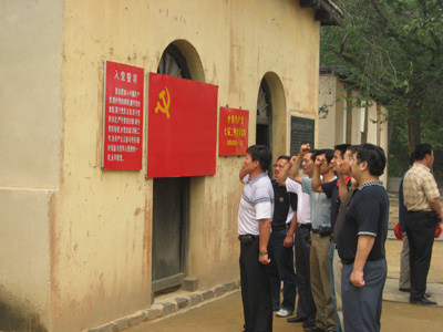 石家莊黨支部的同志們來(lái)到?jīng)Q定中國(guó)命運(yùn)的七屆二中全會(huì)舊址,在鮮紅的黨旗前,由分公司副經(jīng)理徐興義同志帶領(lǐng)大家重溫了入黨誓詞。