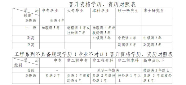 (1)評審。專業(yè)技術(shù)人員取得初級專業(yè)技術(shù)資格后,符合下列表中國家規(guī)定的學歷、職稱、專業(yè)技術(shù)工作年限的,可申報評審晉升相應級別的職稱。少數(shù)專業(yè)破格申報評審的,依照該系列評審條件中破格申報、評審條件。